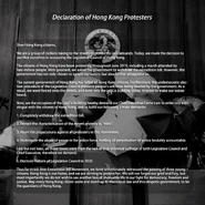 - ↑ MEDIUM:<香港人抗爭宣言> 中英對照版本 Declaration of Hong Kong Protesters (Chinese and English Version)
