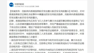 2019年8月,大陸輿論連日針對香港發生的反修例運動,更有內地官方部門首次出手。8月9日,中國民航局聲明稱,國泰航空近期先後發生有機師被控暴動罪後未被停飛,另有員工在WhatsApp群組,流通香港警隊乘搭該公司航班往成都出席「世界警察和消防員運動會」的資訊。民航局認為國泰嚴重威脅大陸航空安全,增加香港往大陸的航空安全風險。據悉,民航局同日已責成民航中南地區管理局行政約見國泰。
