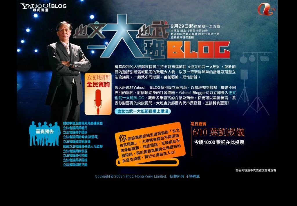 - ↑ 也文也武 BLOG:3/10星期五晚嘉賓:立法會議員黃毓民