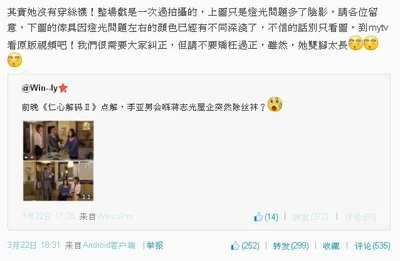 - ↑ 新浪王祖藍的微博:其實她沒有穿絲襪!整場戲是一次過拍攝的,2013年3月22日 18:31