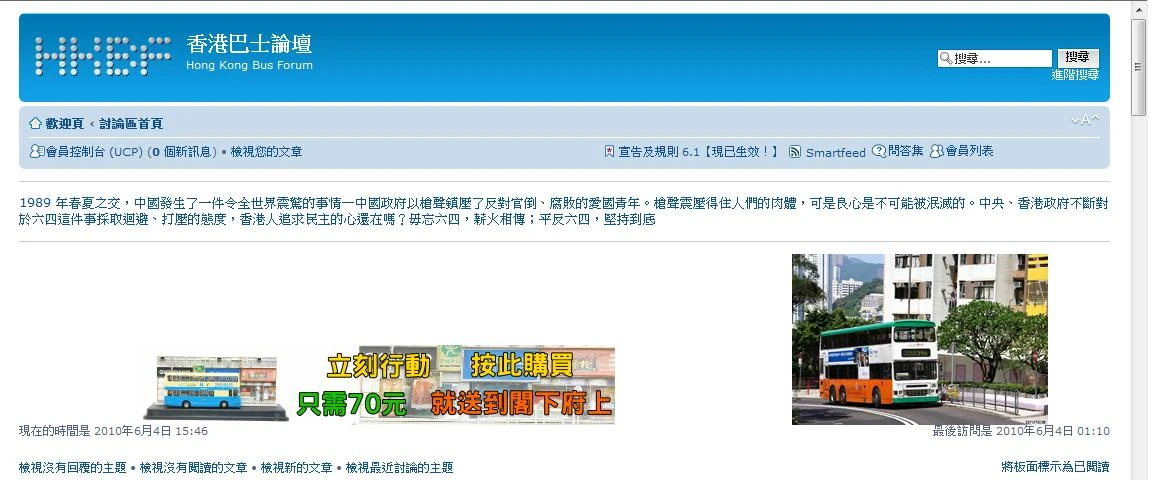 香港巴士論壇於2010年6月4日張點置頂悼念連結於首頁,引起會員討論,有會員認為壇方不應帶有政治色彩,但也有會員支持壇方的做法。[7]