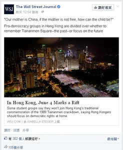 因《華爾街日報》在其facebook專頁中,報導該文章時,引用了一句訪問者的說話:「中國是香港的母親,若母親不得自由,身為孩子的香港又焉能得自由」,結果被不少香港網民留言,表達不同意有關講法。