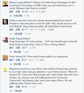 有網民留言指,如「香港在1841年開埠,中共則成立在1949,試問世上可有兒子比自己親母年長100多歲?」,更有人認為,「中共更像二戰時侵佔巴黎時的納綷德國一樣」。[3]