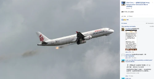 不過有空姐透露,飛機起飛後不久左邊引擎突然著火,並發出巨響。該空姐事後在facebook留言,形容事件十分好彩,她憶述起飛後不久,腳下突然聽到兩次巨響,有人見到左邊引擎出現兩次火光,機師需立即關掉左邊引擎,並通知乘客,「SP(高級機艙事務長)就叫我哋slient review(在腦海重溫一系列安全及緊急逃生方法),突然有幾下(吓)好bumpy(機身不平穩),個下(吓)我都有d淆底,點知係唔係連右邊engine(引擎)都唔work(正常運作)架。」