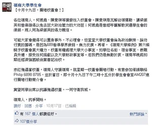 - ↑ 嶺南大學學生會 fb專頁:十月十九日,圍堵校董會!,2015年10月17日 22:10