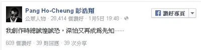 - ↑ Pang Ho-Cheung 彭浩翔 fb專頁:我創作時總誠惶誠恐,深怕又再成為先知⋯⋯,2016年1月5日 19:48