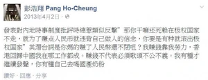 - ↑ 高登討論區:[今次輪到彭浩翔] 微博指中石化需負責 被大陸癲狗圍