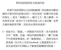 彭導需要再在微博澄清,指是五毛所為:「一段做假說我罵內地人的『臉書原話』,又有系統地莫名其妙同時出現朋友圈,誰都沒在我臉書看到過,也沒找到截圖。只是隨便配張照片打幾句歧視話,就引到一批人像打雞血般來罵街。要說的都說過,不再解釋,只能感謝國家囉。」[13]
