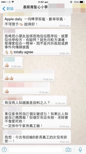 - ↑ 蘋果日報的facebook專頁:稚子何辜【聖心播愛國歌風波 家長聯署促勿難為爆料者女兒】,2015年3月14日 22:50