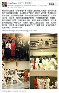 - ↑ John Tsang (曾俊華) fb專頁:Champions!早前我出席活動,主持問我若選一支球隊形容香港,會選那隊?……
