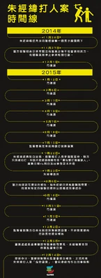 - ↑ 蘋果日報fb專頁:警方同意朱經緯涉嫌毆打的指控屬實,會向律政司作出刑事諮詢,研究是否有足夠證據提出起訴。,2015年12月14日
