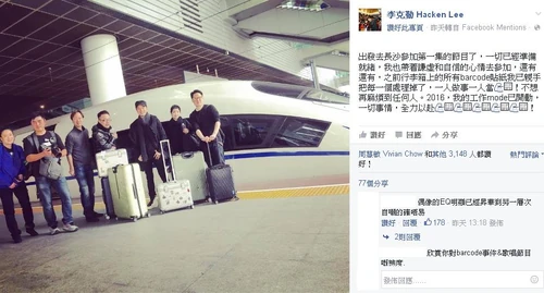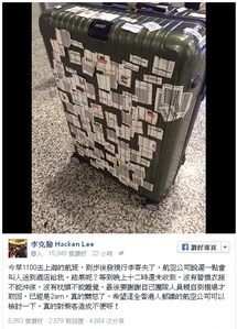 - ↑ 李克勤 Hacken Lee fb專頁:今早1100去上海的航班,到歩後發現行李寄失了,航空公司說遲一點會叫人送到酒店給我...,2015年12月31日