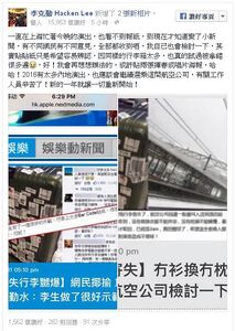 - ↑ 李克勤 Hacken Lee fb專頁:一直在上海忙著今晚的演出,也看不到報紙,到現在才知道變了小新聞,有不同網民有不同意見,全部都收到哂,我自己也會檢討一下...,2015年12月31日