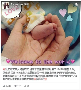 - ↑ Renee Lee 李蘊 fb專頁:我們的寶貝女兒在昨天 提早了三星期來報到...,2016年5月17日