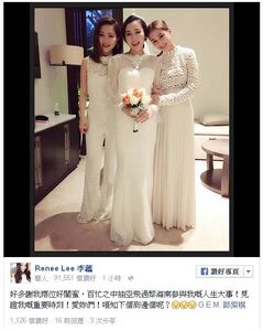 - ↑ Renee Lee 李蘊 fb專頁:好多謝我兩位好閨蜜,百忙之中抽空飛過黎海南參與我嘅人生大事...,2016年1月4日