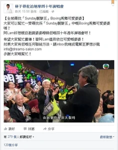10月19日,「林子祥佐治地球四十年演唱會」facebook專頁轉載該片段及上載截圖,留言「全城尋找《Sunday靚聲王》Boxing馬舞可愛婆婆」,表示林子祥很想親自邀請她看其明年的四十週(周)年演唱會。