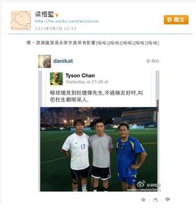 2013年9月上旬,梁栢堅於微博轉發網民的相片及留言:「喺球場見到杜德偉先生,不過條友好寸,叫佢杜生都唔采(睬)人。」而其實相中人是許志安。