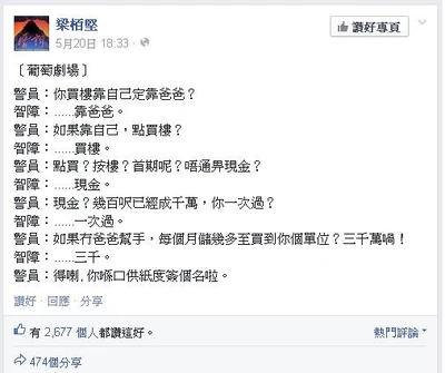 隨後梁栢堅模仿屈穎妍的文體,宣佈罷寫facebook,獲得過千讚好。[7]