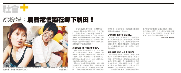 - 明報:綜援婦:居香港慘過在鄉下耕田!,2008年5月10日。