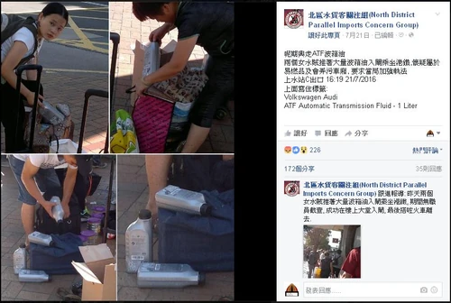 - ↑ 北區水貨客關注組fb專頁:呢期興走ATF波箱油 兩個女水賊推著大量波箱油入閘乘坐港鐵...,2016年7月21日