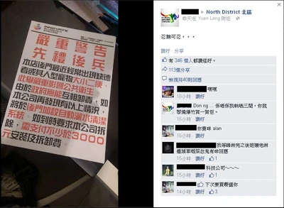 2015年5月14日,一名於上水開設科技公司的東主,於「North District 北區」facebook 專頁貼了一幅告示,引起了網民的熱烈回響。