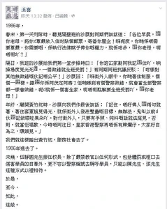 - ↑ 王喜的facebook:1986年,春末,第一天列隊時...,2014年10月15日