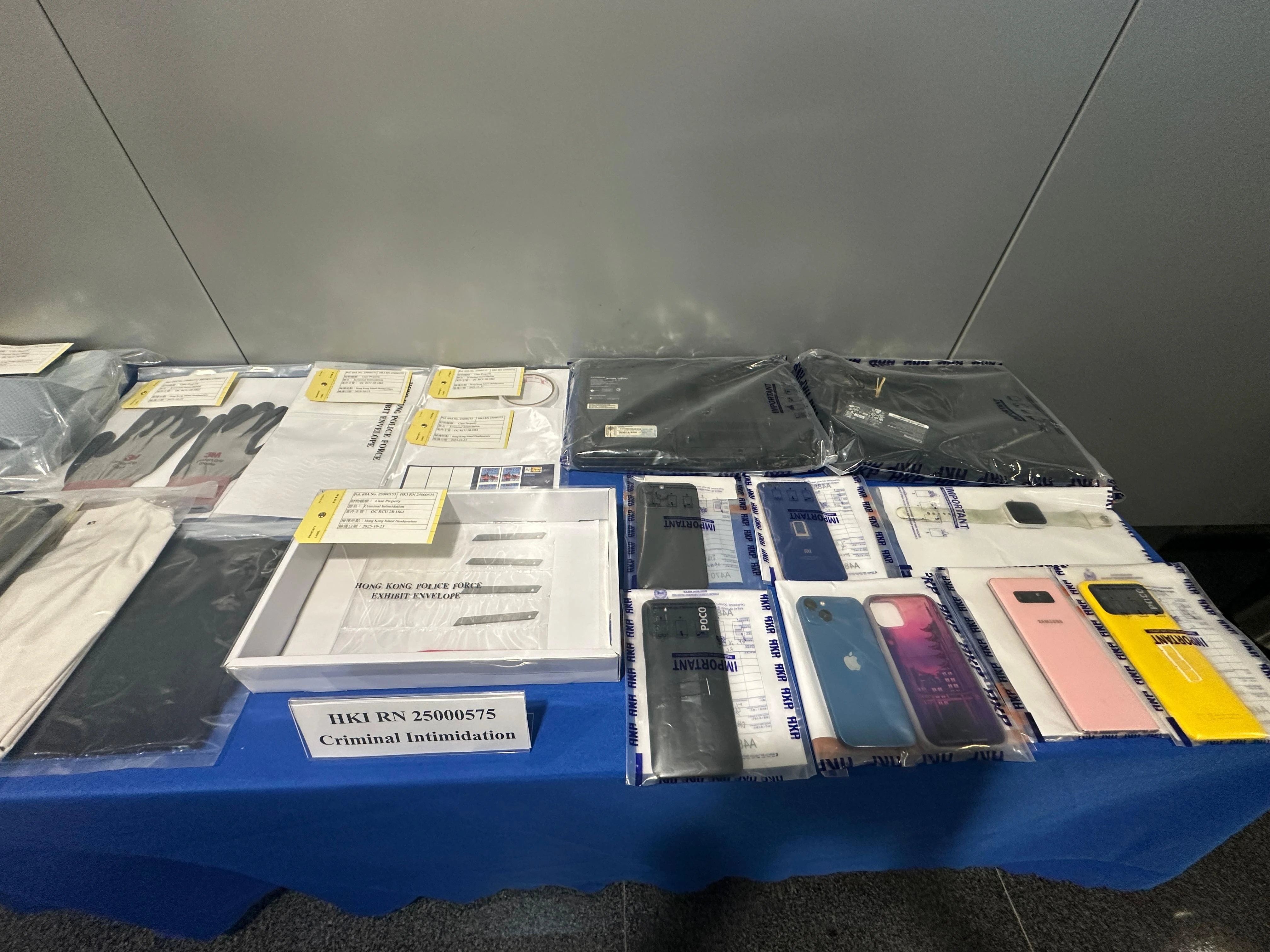 警方在其中一名被捕人身上檢獲同款郵票、刀片、雙面膠紙及手套,相信是製作恐嚇信件後剩餘的工具。案件仍在調查中,其中2名被捕男子正被扣留調查,其餘已獲准保釋候查[33]。港島總區重案組高級督察賴境耀表示「警方留意到這個自稱『白卡聯盟』的組織多次製作和發佈內容不當的影片,包括在公眾場所和交通工具上作出一些滋擾和猥褻行為,這一系列行為不單止涉及刑事成份,而且近期有升級跡象」。[34]