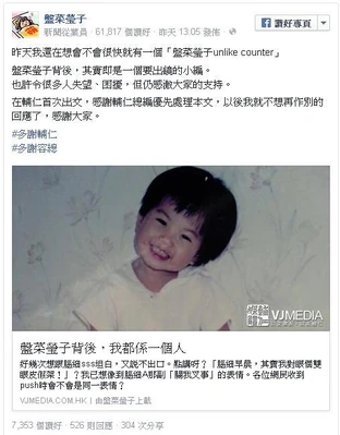 - ↑ 蘋果日報即時新聞:【毛記Like后被起底】盤菜瑩子真名曝光 被爆求學時常「收兵」,2016年1月18日