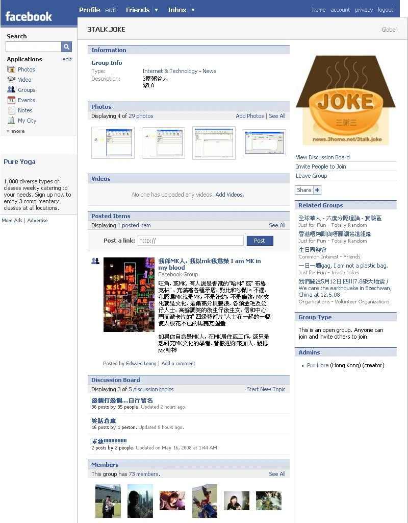 粥谷面書組的網址為:「http://www.facebook.com/group.php?gid=7676633483」。