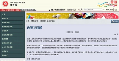 2014年1月下旬,網民發現教育局網站於2013年12月底上載的一篇有關「語文學習支援」文章中,在起首一段寫道「雖然基本法規定中英雙語為本港法定語言,但接近97%本地人口,都以廣東話(一種不是法定語言的中國方言)作為家居及日常交際的常用語言......」,當中介定廣東話為「不是法定語言的中國方言」引起網民猛烈批評。[9][10]