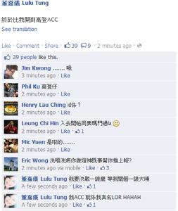 - ↑ facebook:球員為國家努力,蘋果就講撚到lulu有份踢咁,乜撚野功勞都有佢份,蘋果你用錯人啦!多左呀!係米應該係時候先收收皮呀?