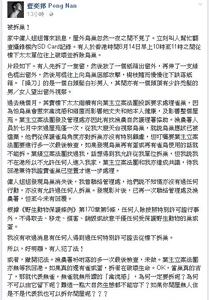 一篇原本放在我私人facebook的感想,被公開、誤解、扭曲再而放大,本人深表遺憾。 |
