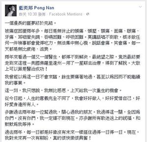 - ↑ 藍奕邦 Pong Nan fb專頁:一個漫長的噩夢終於完結...,2016年5月29日