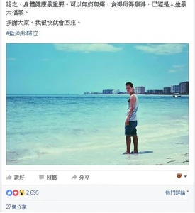 藍奕邦在文中形容自己漫長的噩夢終於完結,詳述治療痛症的心路歷程,他寫道:「從今日起,人生的意義完全不同了,我會好好做人,好好愛惜自己,好好愛身邊所有人!」