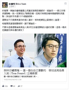 - ↑ 袁彌明 Erica Yuen fb專頁:好簡單,無論你鍾唔鍾意公民黨或者楊岳橋都好,結論係--總之你想民建聯輸,就一定要投比7號楊岳橋...,2016年2月17日 1:27