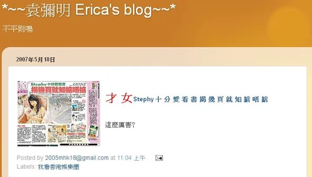 - ↑ *~~袁彌明 Erica's blog~~*:I am sorry. I want to say sorry to Stephy.,2007年5月21日