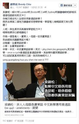 - ↑ 壹週Plus:梁錦松贊成普教中 「唔係個個母語都係廣東話」,2016年1月9日