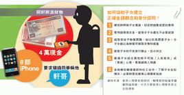 - 明報:中二生4萬現金校內豪派 另贈8部iPhone 換同學排隊叫「軒哥」,2010年11月29日。