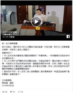 - ↑ 明報即時新聞fb專頁:【係咪100蚊?】記者第三度追問,病房價錢是否100元一日,陳表示問過太太,她稱該病房「同其他病房一樣價錢」...,2016年6月6日