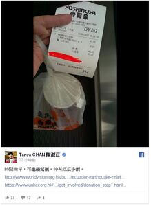 - ↑ Tanya CHAN 陳淑莊 fb專頁:時間尚早,可繼續幫襯。仲有厄瓜多爾。,2016年4月21日