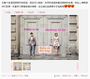 2014年4月中旬,陳爽於微博貼圖,宣傳她有喜:「多謝大家這段時間來的祝福,現在可以說啦:我們的家庭將會迎接新的成員。對此心情既期待又緊張,我會努力學著做個好媽媽,各位信任爸媽要多多指教哦。」[9]