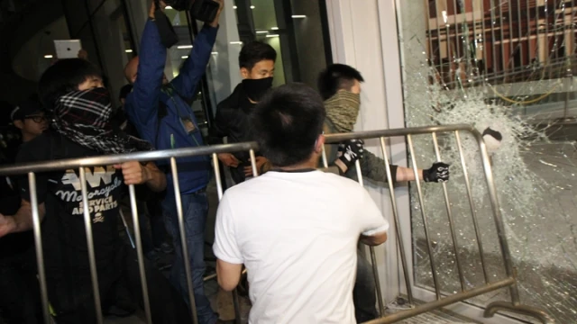 11月19日凌晨1時許,約10多名示威者突襲立法會,部份人戴上口罩,用鐵馬衝擊立法會外的玻璃門,企圖衝入立法會,示威者的鐵馬猛力撞擊玻璃門,至少有三道玻璃門遭撞毀。示威者衝擊期間,有部份留守營幕的示威者曾作出阻止,但衝擊人士並不理會,繼續用鐵馬撞玻璃,以及撿起地磚掟向玻璃門,《蘋果日報》指最高峰時有約500人參與衝擊。[2]