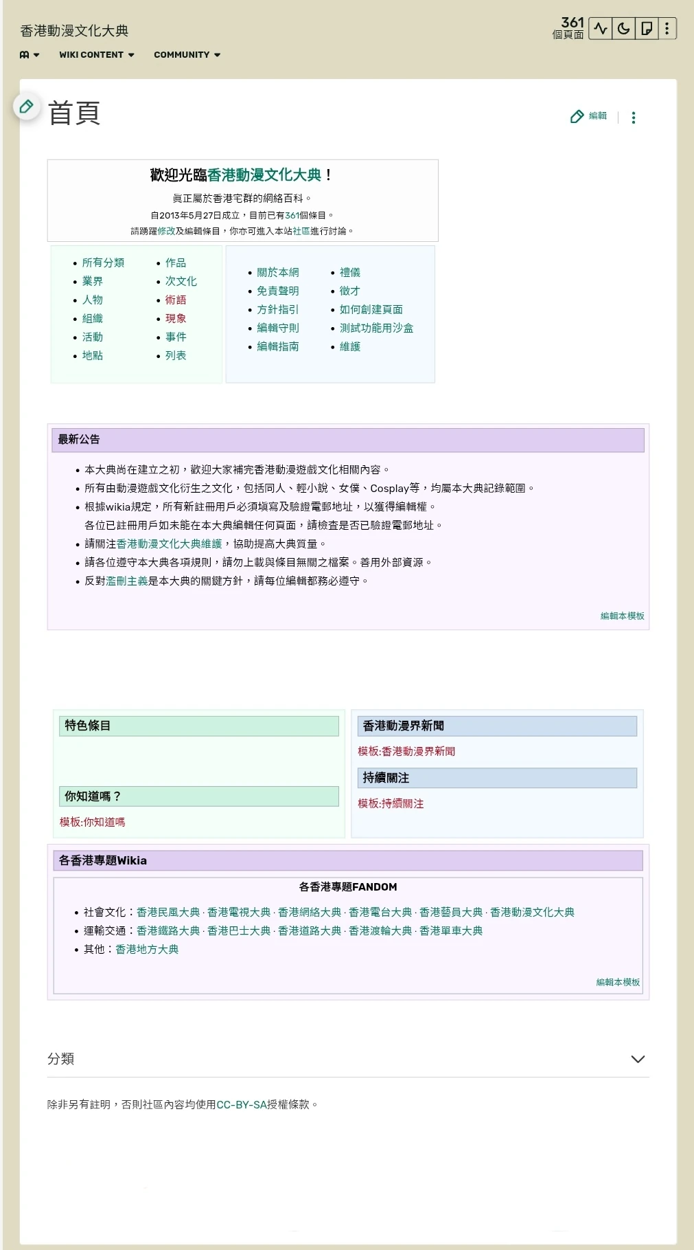 - 截至2025年11月10日,香港動漫文化大典共有361個條目。
