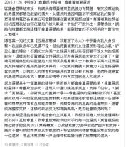 - ↑ 100毛fb專頁截圖:【民建聯真係人才輩出】估唔到除咗輸Gun,佢嘅黨友都係擁有極高中文水平嘅才子才女!,2015年11月23日