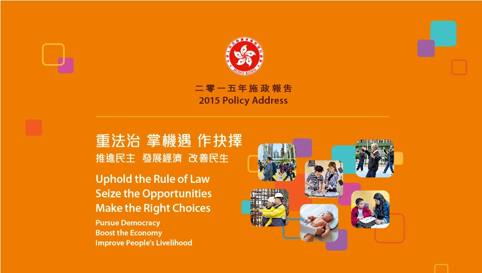 《2015年施政報告》在2015年1月14日推出,為行政長官梁振英任內第三份施政報告,繼續以其競選時主題顏色橙色作主色。
