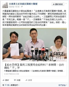 - ↑ 蘋果日報fb專頁:鉛份嘅嘢……【民建聯曾稱牛下食水無鉛】,2015年7月29日