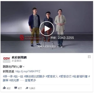 2016年3月17日,政府新聞網fb專頁發佈一段題為《辦法總比困難多,愛惜自己,愛惜家人》的宣傳短片,意圖呼籲年輕人珍惜生命,但就遭網民砲轟為「反面教材」。
