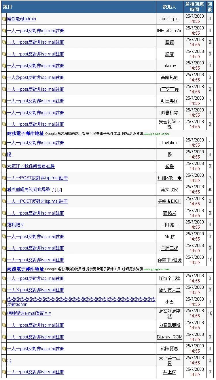 有不少7.25藉非ISP Mail註冊的會員開post攻擊舊會員: