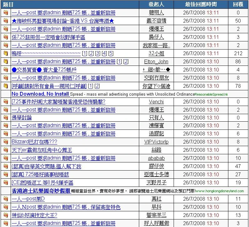 - ↑ 此句於傍晚時份加入,晚上被刪除(由於大部份使用非ISP電郵註冊的用戶已被解禁)