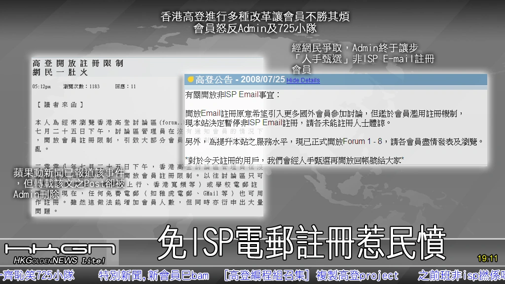 - ISP電郵門檻過高,以高登知名度日益增加下,限制以每個家庭只能擁有一個的ISP E-mail申請已經過時